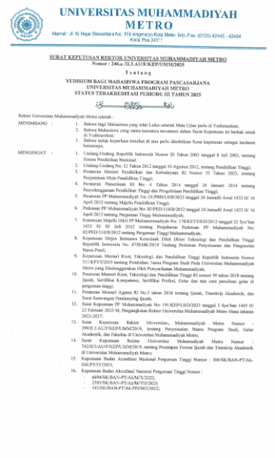 Program Pascasarjana (PPs) Universitas Muhammadiyah Metro kembali menunjukkan komitmennya dalam menjaga mutu akademik dan tata kelola program studi. Pada hari Kamis, 6 November 2025, Prodi Magister Hukum (MH) mengadakan Rapat…