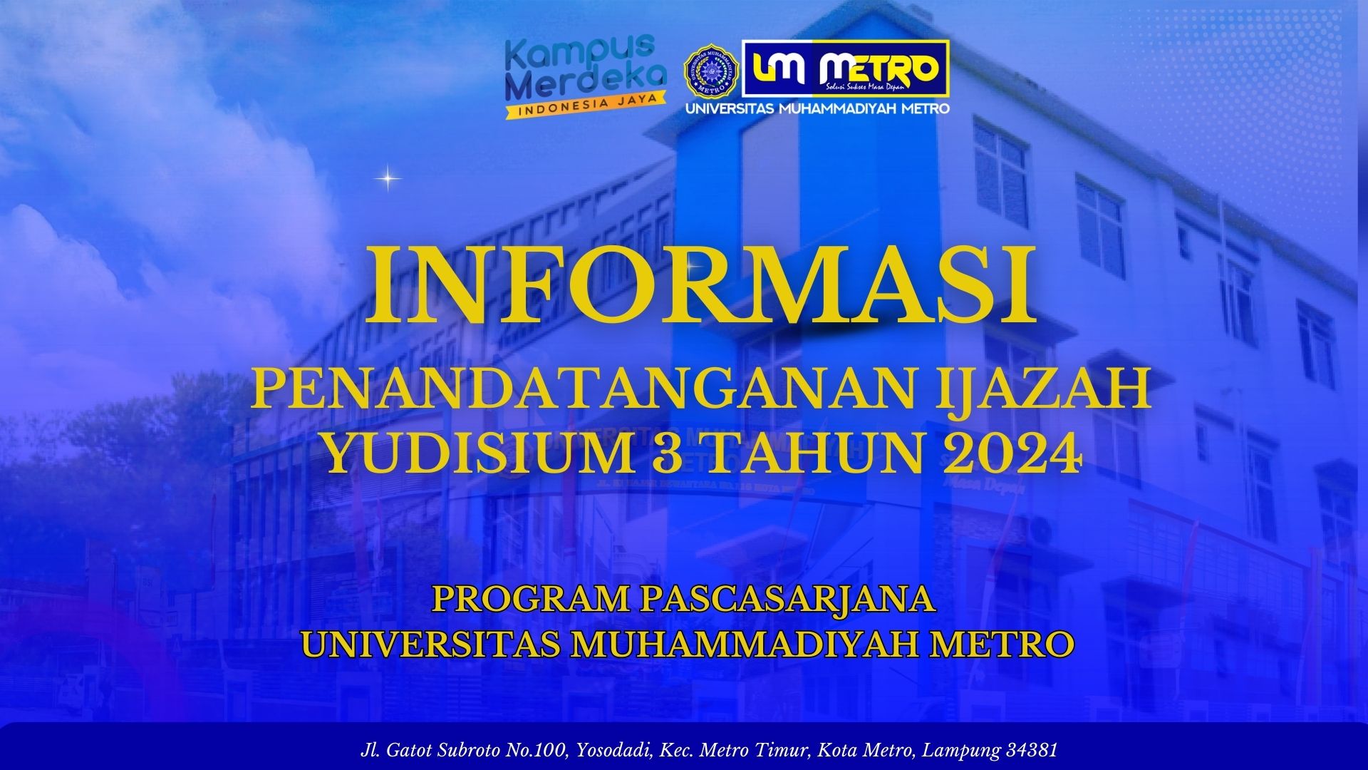 Waba'du. Berdasarkan surat edaran Rektor Universitas Muhammadiyah Metro nomor: 1983/II.3.AU/F/UMM/2024 tanggal 09 Desember 2024 perihal jadwal penandatanganan Ijazah, maka bagi peserta Yudisium III Tahun 2024 untuk dapat melakukan penandatanganan ijazah pada: